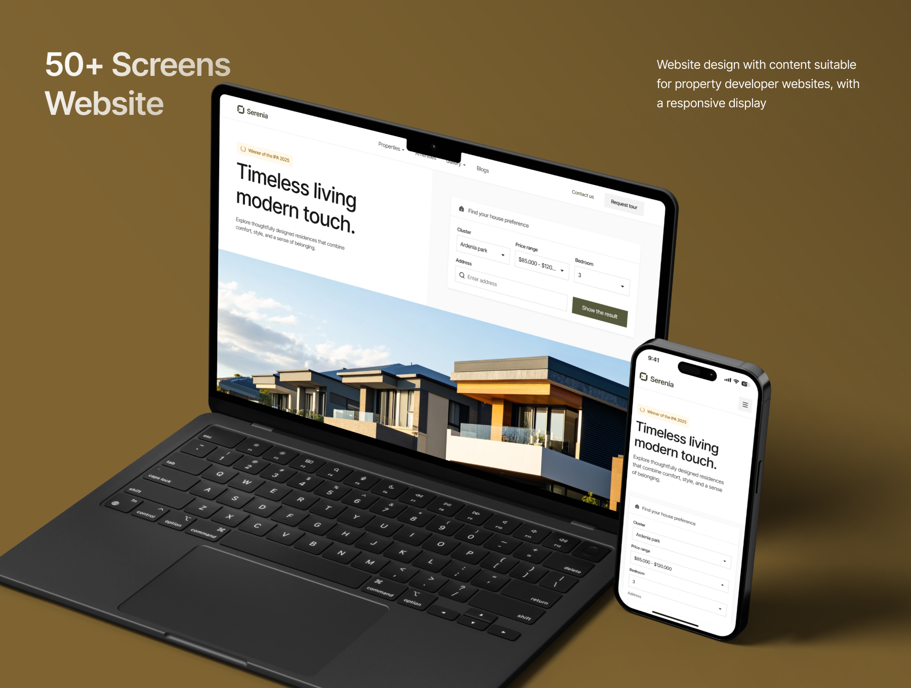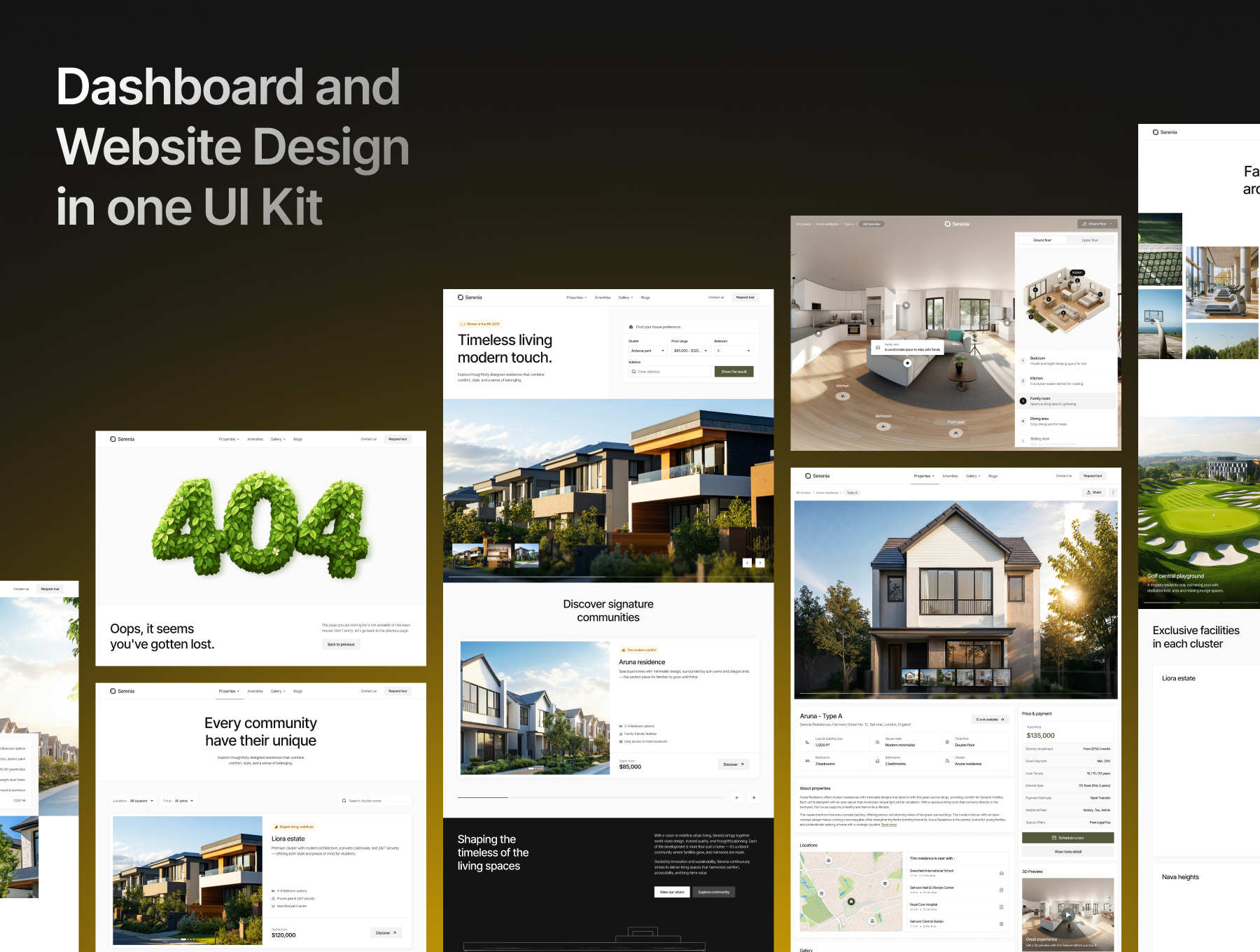 Serenia – Real Estate Management UI Kit is a complete design solution for real estate dashboards and property developer websites. With 100+ responsive screens, Serenia helps you create modern platforms for property listings, unit management, customer requests, and real estate marketing.